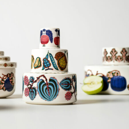 In 2024 werd dit kleurrijke servies toegevoegd aan de collectie van Iittala. Het Taika Sato van de Finse ontwerper Klaus Haapaniemi. “Sato” betekent “oogst” in het Fins en dat is goed te zien op het decor van groente en fruit. Ieder onderdeel van de collectie heeft zijn eigen decor en is perfect ondeling te combineren.