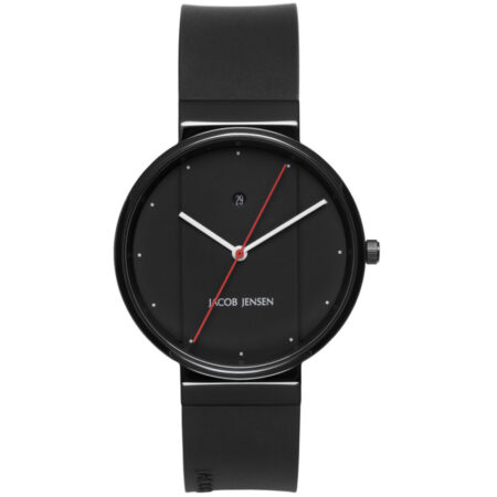 Deze strak vormgegeven Jacob Jensen horloge heeft een diameter van 35mm en is 7 mm dik. De roestvrijstalen kast is voorzien van een kleur coating en het horloge heeft een rubberen band. In de kast bevindt zich een quartz kwaliteitsuurwerk en is afgewerkt met mineraalglas.