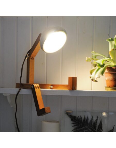 Mr Wattson is een brutale designlamp die in vrijwel ieder interieur past. Plaats hem op tafel, bureau, of nachtkastje. De benen zijn verstelbaar, waardoor je de lamp in vele leuke posities makkelijk en overal een plaatsje kan geven. Het lichaam is gemaakt van essenhout en de kop is geïnspireerd op de lampen van een oldtimer. Deze flexibele koplamp heeft een doorsnede van 13 cm en kan je in alle richtingen draaien. De lamp is al voorzien van een G9 LED-lamp van 2,5 Watt, waardoor hij energiezuinig is. Een bijkomend voordeel is dat de behuizing niet warm wordt en een lange levensduur heeft.