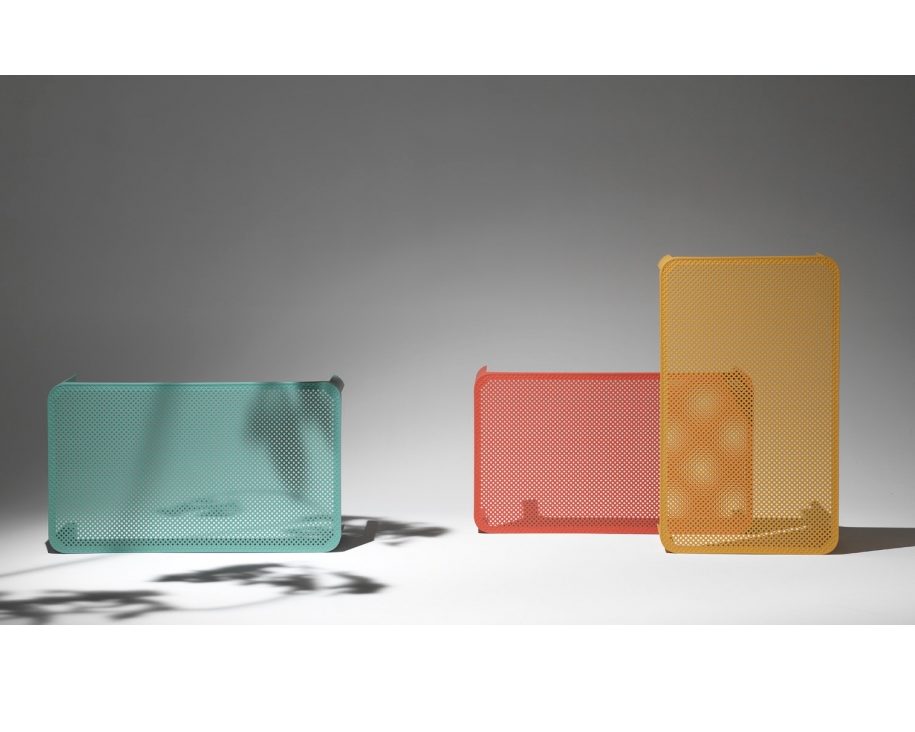 Deze elegante lage salontafel ontworpen door Raffaello Galiotto, is gemaakt van Polypropyleen en versterkt met glasvezel. Hierdoor is de tafel oersterk, vorm- en kleurvast en ook nog eens onderhoudsvriendelijk. Het rechthoekige blad is voorzien van een geperforeerd patroon dat de hele Net-collectie kenmerkt. De tafels zijn stapelbaar en hebben antislipvoetjes.